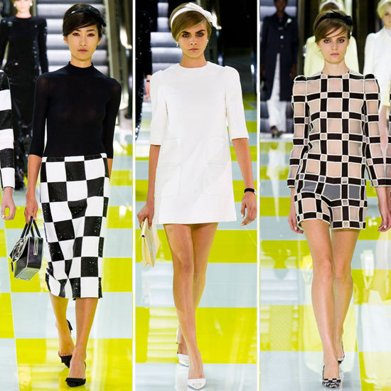 While Louis Vuitton took the checkered trend to the next level, Michael Kors went for a more classic approach. The collection at Louis Vuitton has a mod vibe with reinvented styles of the signature Damier print in bright yellow and classic black and white checkers on everything from coats to jumpsuits to dresses, and even shoes and bags. Michael Kors did not disappoint either with his Fall collection that features cropped jackets and wool coats, as well as skirts and pants in taxi cab yellow and black moto detailing.
