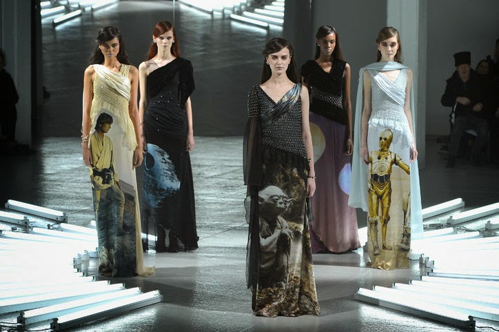 With excitement building for next year's newest Star Wars installment, designers are elevating sci-fi kitsch to high-fashion cool. Rodarte's Death Star gown looked stellar on Kirsten Dunst, while Darth Vader's image appeared on the runway at Preen because "most girls have a fun, dark side," says co-designer Justin Thornton. For a subtler take, moons and stars sunnies, and twinkling polish makes for a galactic experience. Embrace it- the (fashion) force is with you!